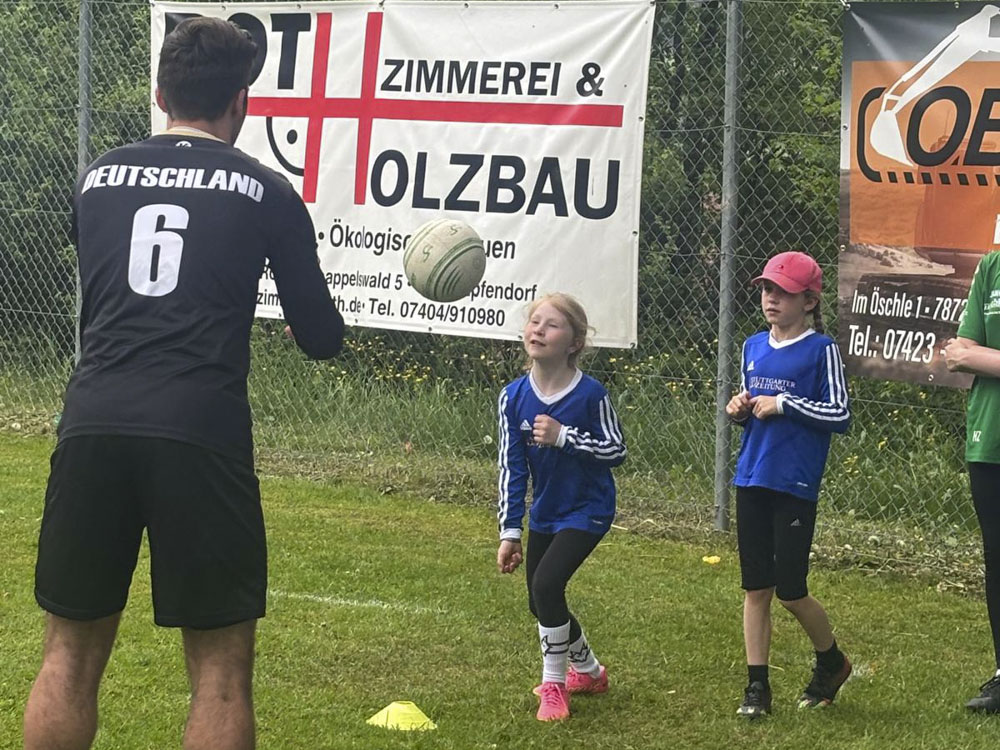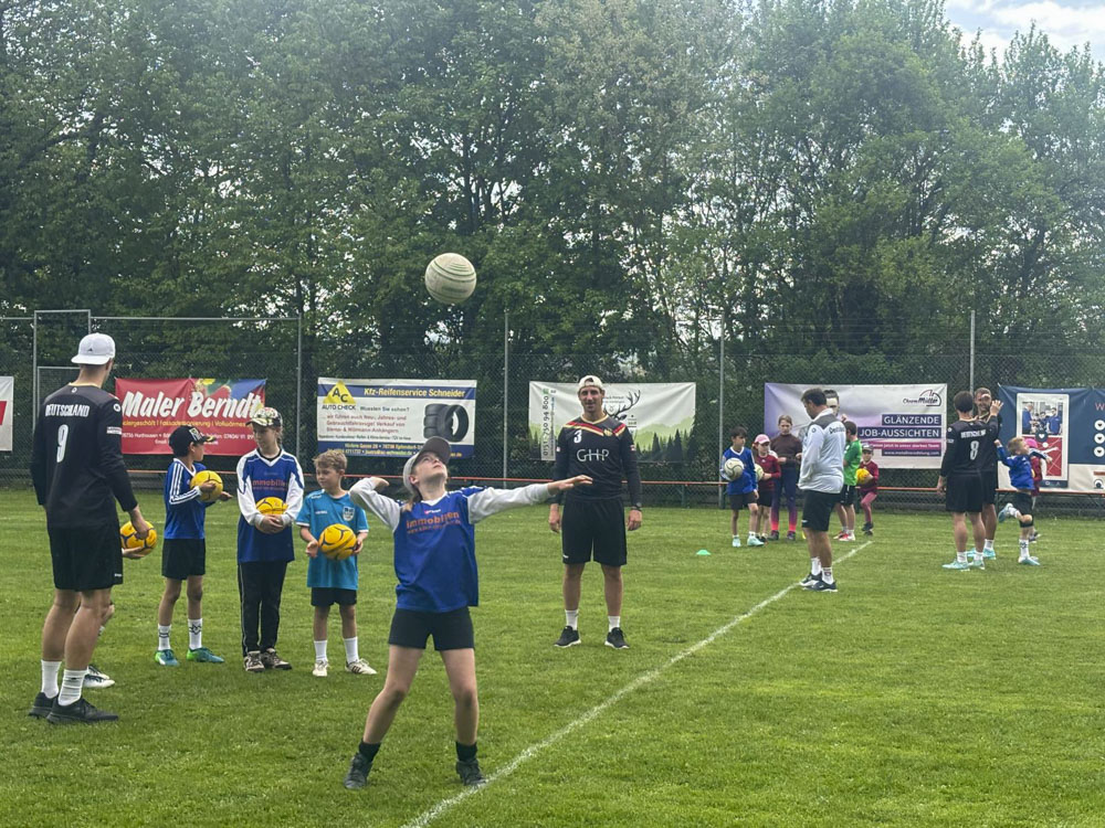 Das Training war super organisiert, es wurden Stationen gebildet mit unterschiedlichen Aufgaben und die Nationalspieler haben an allen Stationen die Kinder angeleitet und unterstützt.