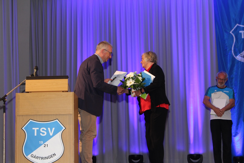 Für 50 Jahre im Ehrenamt, davon die meiste Zeit als Kassiererin bzw. Vizepräsidentin Finanzen im Vorstand, bekam Herta Schurer von Michaela Netzer-Voit den DTB-Ehrenbrief mit silberner Ehrennadel überreicht.