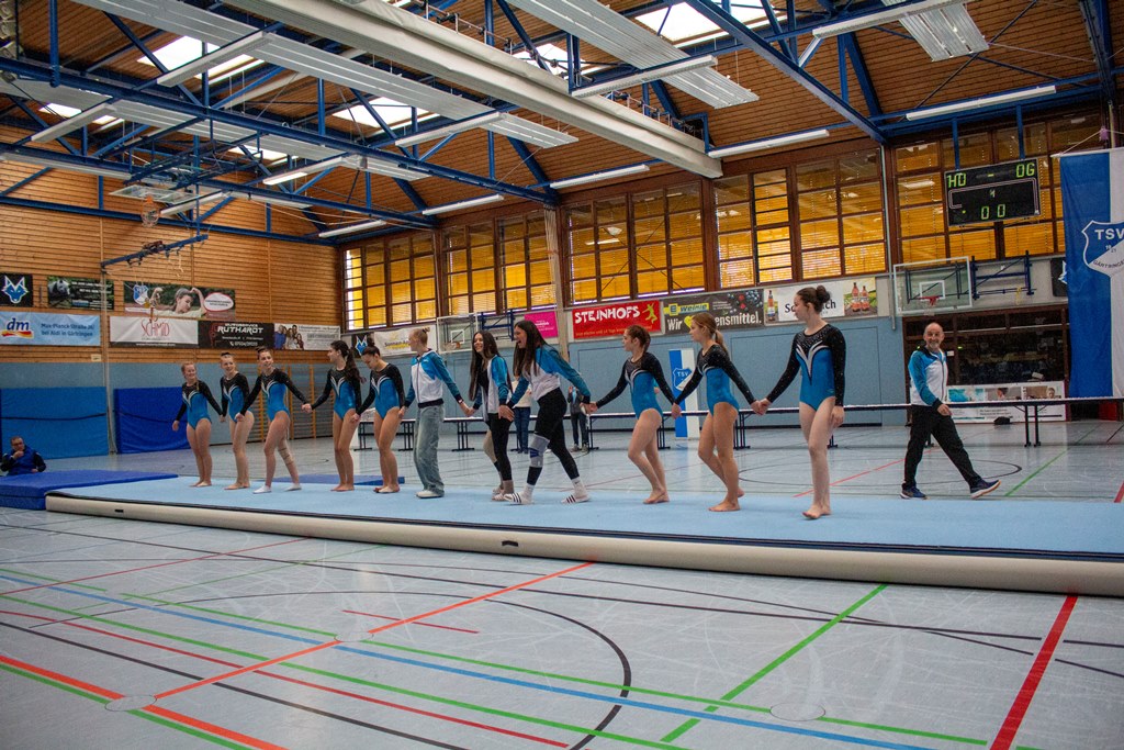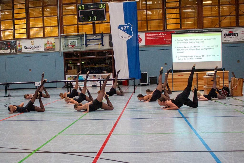 Nachdem am Samstag bei der Deutschen Meisterschaft im 5er Radball in der Theodor-Heuss-Halle Spitzensport gezeigt wurde und wir unseren Sportfreunden vom RVG zum Deutschen Vizemeistertitel gratulieren konnten, fand am Sonntag vor ebenfalls gut gefüllter Tribüne unsere große Sportabzeichenverleihung statt. Zwischen den Ehrungen und der Ausgabe der Urkunden führte die Damenriege unserer Turnabteilung einige ihrer Übungen am Boden vor, mit denen sie am Vortag beim Relegationswettkampf den Aufstieg in die Kreisliga A geschafft hatten. Hierzu gratulieren wir ebenfalls herzlich. Der zweite Auftritt bestand dann in Tänzen der Gruppen Pluto, Saturn und Pegasus unserer Abteilung Jazz- und Modern-Dance TanZeitLos zu fetzigen Melodien.